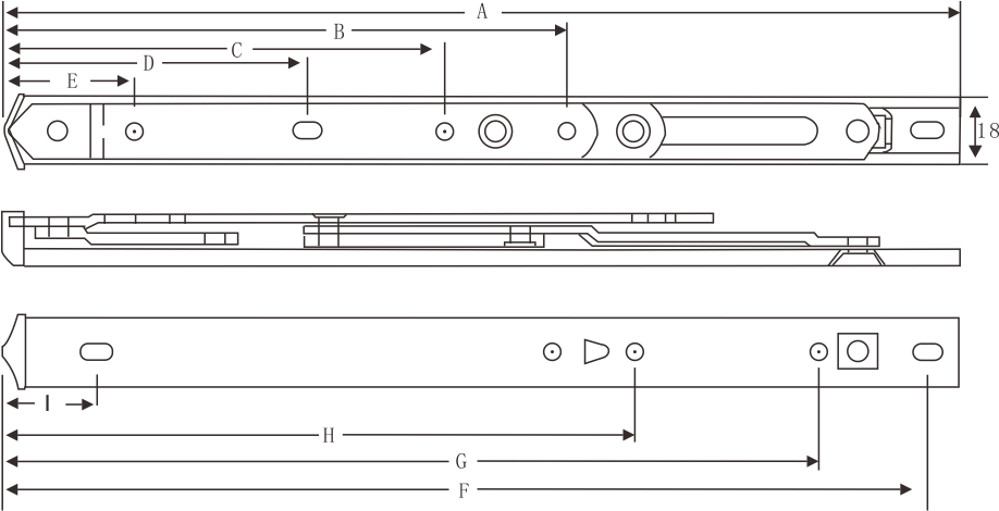 | 連桿數(shù)量 | 折片厚度(mm) | 規(guī)格\值 | A | B | C | D | E | F | G | H | I | 窗最高(mm) | 窗最寬(mm) | 窗最重(kg) | 開啟角度(±2°) |