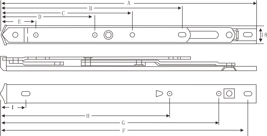 | 連桿數(shù)量 | 折片厚度(mm) | 規(guī)格\值 | A | B | C | D | E | F | G | H | I | 窗最高(mm) | 窗最寬(mm) | 窗最重(kg) | 開(kāi)啟角度(±2°) |